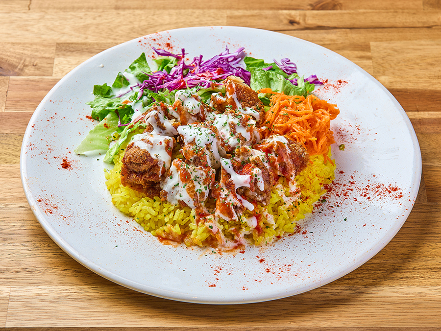 ニューヨーク屋台フードで人気のオーバーライスをオリジナルのスパイスで癖になる一品に仕上げました。