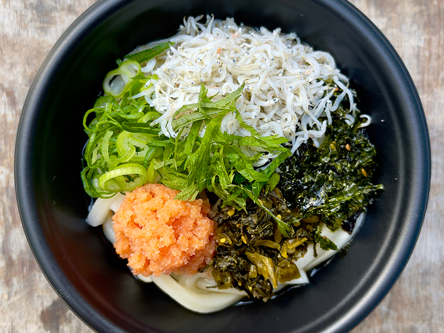 釜揚げしらすと高菜、明太子の冷やしうどん