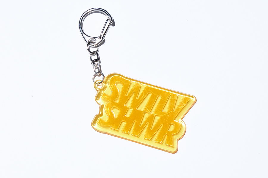 ビタミンカラーのロゴキーホルダー。リフレクター素材なので暗闇で光るに当たると反射します。夜道の安全対策にも。